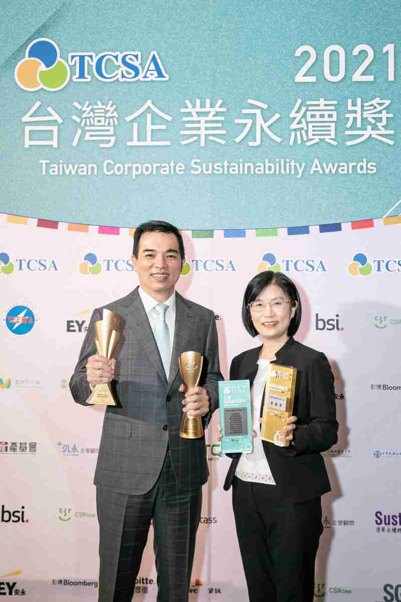 达在台湾永续奖所评比环境、、社会、、治理等各面向的永续绩效均获高度肯定 (左:优游UB8光电总经理暨营运长柯富仁,,,,右:优游UB8光电永续长古秀华)