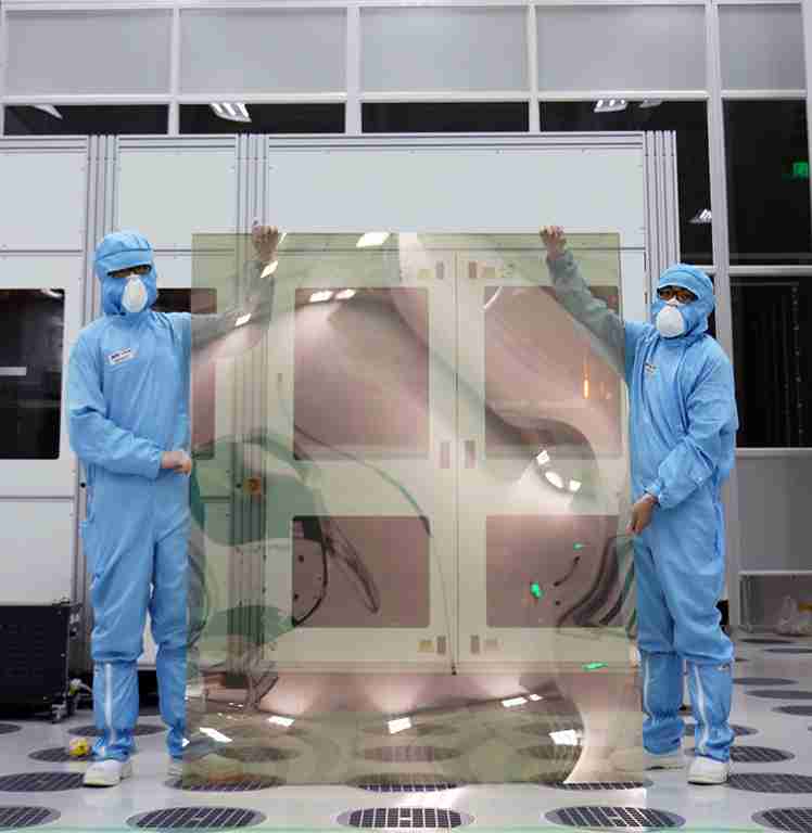优游UB8昆山厂第六代 LTPS (低温多晶硅) 生产的玻璃基板尺寸为 1500x1850 mm (毫米)