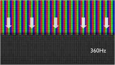 传统液晶驱动是从左到右单向进行,,在画面更新速度愈来越愈快的情况下,,,,位于驱动线路末端的右下角区域,,,,画素的闸极来不及在短时间内获得足够电压,,无法显示出正确的颜色资讯。。。。 |